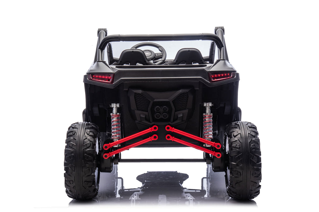 Regala ai tuoi bambini un'avventura emozionante con la macchina elettrica UTV per bambini! Questa robusta e divertente vettura è dotata di batteria da 24V - 7 Ah, garantendo prestazioni durature e divertimento senza limiti. Con due sedili reali, luci a LED, suoni e musiche predefinite, e un dashboard multimediale, i piccoli piloti vivranno esperienze coinvolgenti e realistiche. Le ruote in EVA offrono una guida stabile e silenziosa, mentre l’acceleratore a pedale e il cambio avanti/indietro permettono un controllo semplice e sicuro. La doppia velocità permette di adattare l’esperienza di guida alle capacità dei bambini, rendendo ogni uscita un momento di puro divertimento. Con dimensioni di 143x63x75 cm e un peso di 29 kg, questa macchina elettrica UTV è perfetta per regalare ore di gioco sicuro e avventuroso ai tuoi piccoli esploratori!