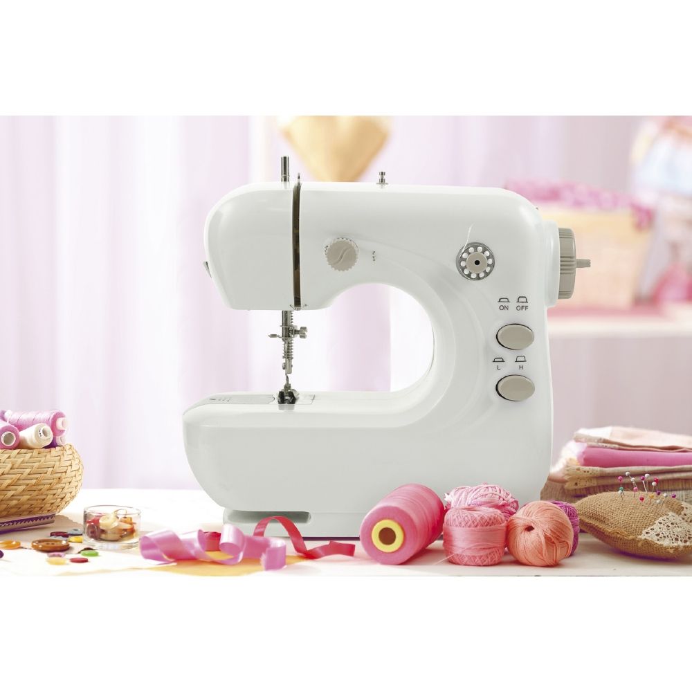Pourquoi choisir Mathilde ? Parce qu'il coud rapidement et n'importe où. Matilda est la machine à coudre compacte, facile à transporter grâce à sa petite taille. Non seulement il fonctionne sur secteur, mais si vous avez besoin d'une réparation immédiate, avant un événement important ou dans les coulisses d'une loge, tout ce dont vous avez besoin est de 4 piles AA à portée de main. Le kit inclus dans le package facilitera son utilisation. Petit secret Avant de commencer chaque travail, testez l'avancement de l'aiguille avec un morceau de tissu à coudre ou à réparer : cela vous aidera à prendre confiance et à éviter d'abîmer les vêtements et vêtements.