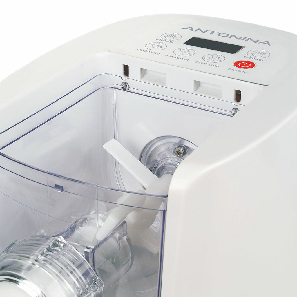 Antonina est la nouvelle machine à pâtes automatique et intelligente KooperX, et à partir d'aujourd'hui c'est aussi le nom que vous donnerez au bonheur, celui que vous ressentez face au bon et authentique goût des choses. Affichage numérique, dosage facile des ingrédients, 13 filières pour déguster chez soi toutes les formes de pâtes les plus populaires. Vous avez peur de salir la cuisine ? Sans peur! La pâte se prépare à l'intérieur du récipient : rassemblez la farine et les liquides en suivant les instructions du manuel, choisissez votre format préféré et attendez qu'elle soit tirée. Les pâtes sont prêtes à être cuites et partagées comme le veut la tradition. Expérimentez avec les ingrédients, testez différentes farines, colorez les pâtes avec du jus de légumes. Quel est? Votre favori!
