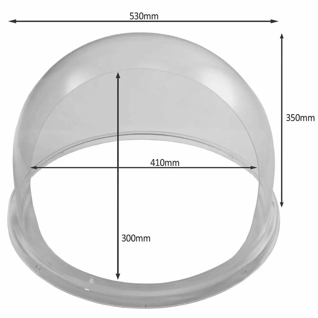 - Dôme : 167 cm (circonférence) x 53 cm (diamètre) x 35 cm (profondeur) x 0,5 cm (épaisseur)
