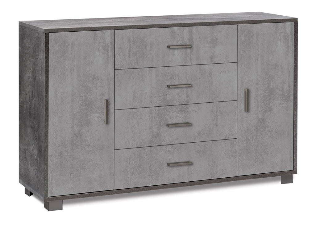 Madia 2 Ante 4 Cassetti 136x86x41 cm Ossido Nero/Cemento