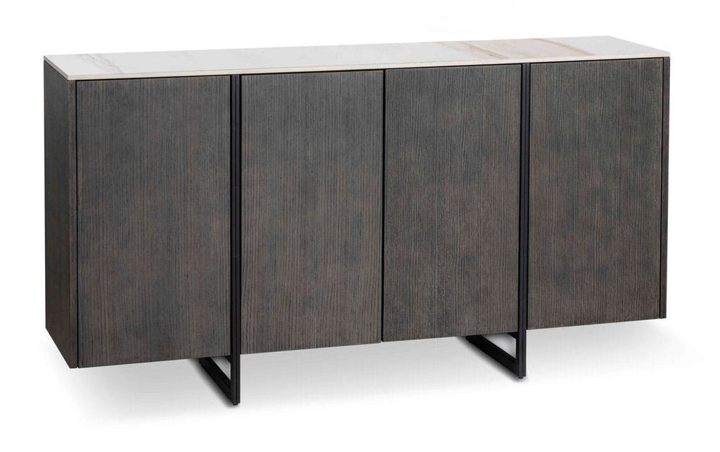 Classica e graziosa, la madia Alpha in MDF impiallacciato, si distingue per il suo carattere moderno e le linee pulite. Il top in ceramica Marmo Calacatta dalle delicate venature poggia sulla raffinata, quanto discreta struttura in rovere grigio scuro. Il meccanismo push&pull con chiusura ammortizzata e le dimensioni contenute 160 x 40 x 85 cm, rendono questo mobile compatibile con le abitazioni moderne che privilegiano la funzionalità, ma non rinunciano a un tocco di classe.