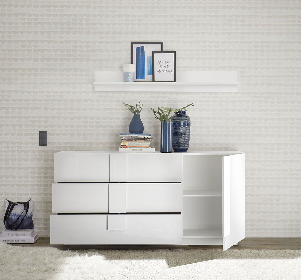 Madia Design Moderno 1 Anta 3 Cassetti Jupiter 182x44x90 cm Bianco laccato lucido