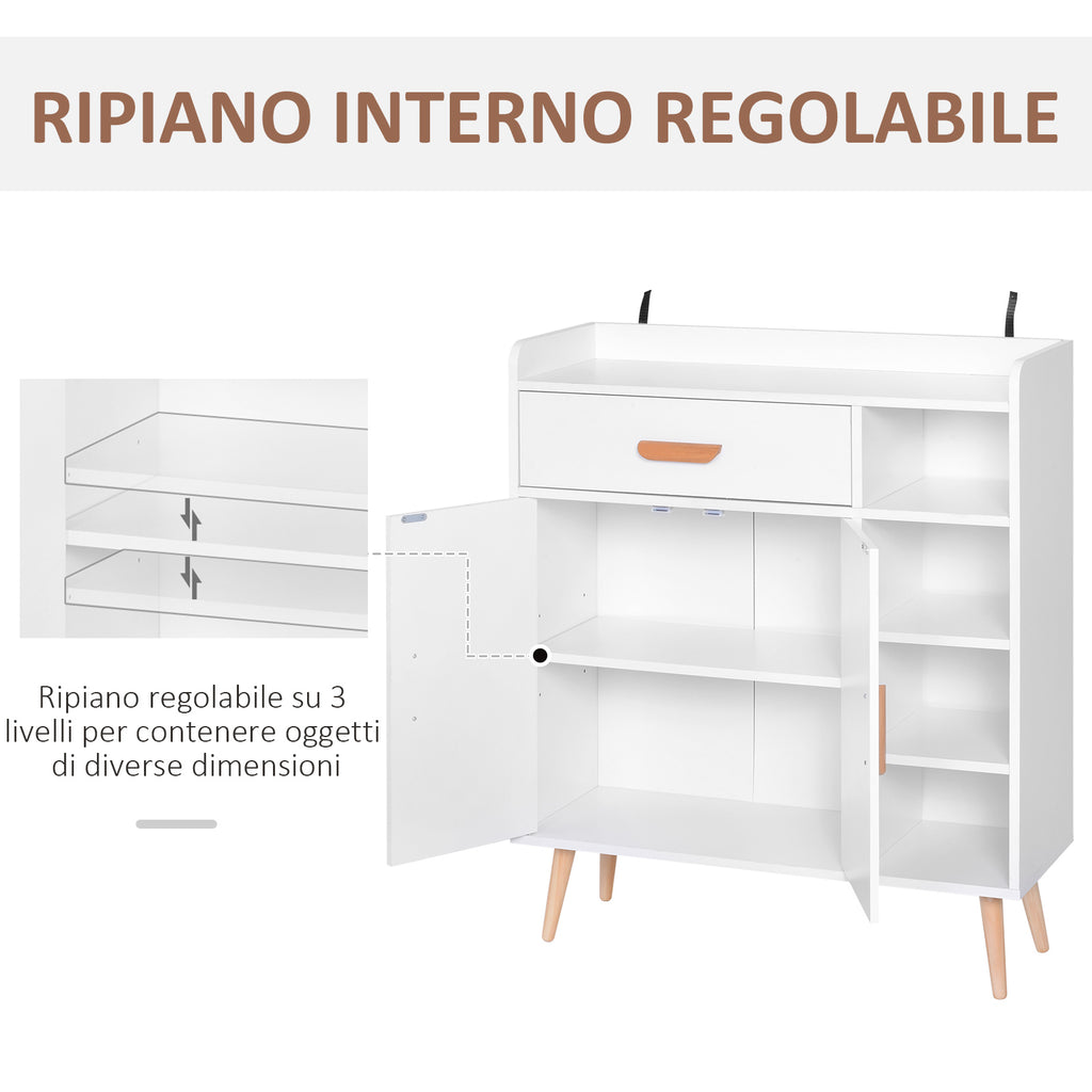 Buffet meuble de salon avec pieds en bois de pin blanc 80x29,5x96 cm