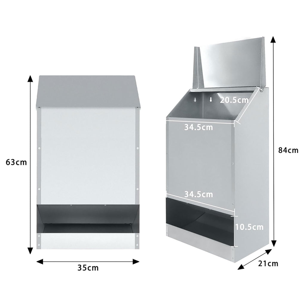 Mangiatoia per Galline 35x20x63 cm Capienza 23kg in Acciaio Zincato