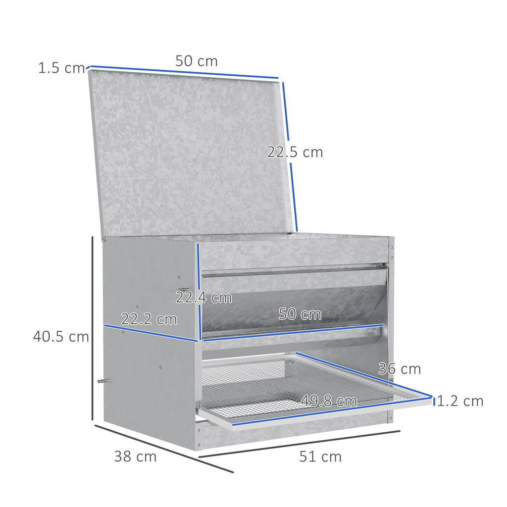 Mangeoire pour Poulets 51x38x40,5 cm en Métal Galvanisé et Acier Inoxydable Argenté