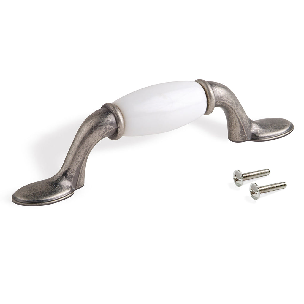 La poignée de meuble Papua est en zamak avec une finition en argent bronzé et vieilli et des détails en céramique . Il a un design classique, conçu pour un meuble rustique, classique ou colonial. Les vis M4 pour le montage sont incluses. Chaque poignée est emballée individuellement pour éviter les chocs et les rayures.