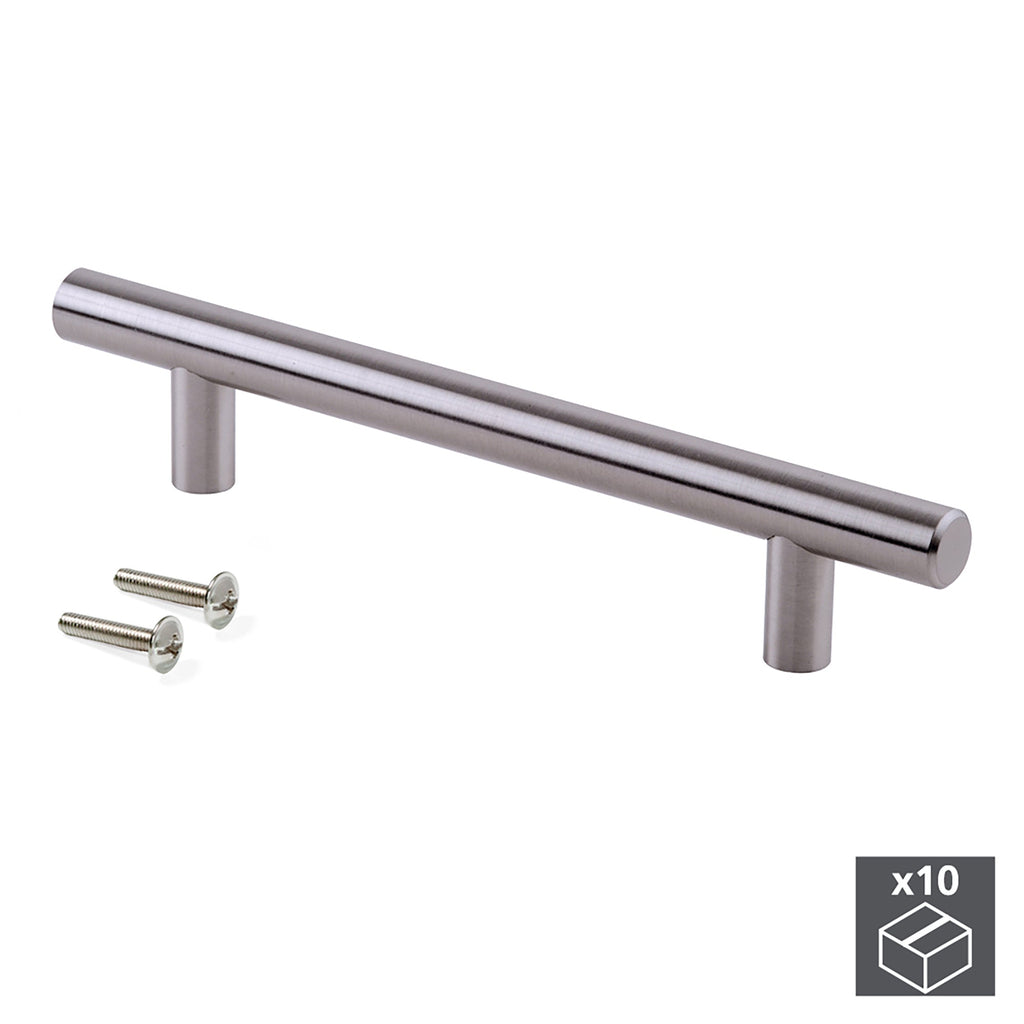 Emuca Poignées de Meuble 12 mm Entraxe 128 mm Acier Nickel Satiné 10 Pièces