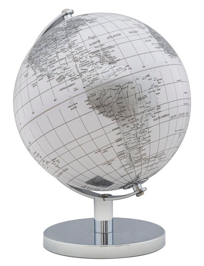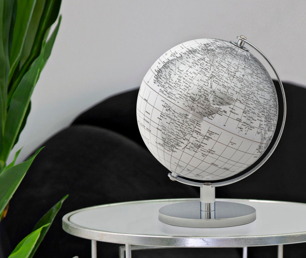 Globe décoratif en matière plastique avec base en métal. Affichez votre âme de véritable globe trotter grâce à des globes sophistiqués et glamour.