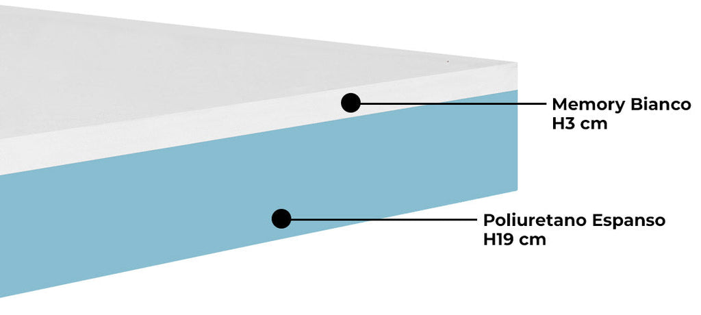 Comfort est un matelas caractérisé par 7 zones en forme , qui rappellent les formes naturelles de la colonne vertébrale. Ce système permet de répartir équitablement le poids du corps, garantissant ainsi un repos absolu. Le matelas se compose de 2 couches . La première couche est composée de 19 centimètres de mousse (polyuréthane expansé à l'eau), tandis que la deuxième couche est composée de 4,5 centimètres de mémoire lisse. La mémoire, grâce à la mousse de polyuréthane et à la densité particulière, garantit l'élasticité et la non-difformité, un repos adéquat et la prévention des douleurs musculaires au réveil . Si au réveil vous ne vous sentez pas reposé, avez mal au dos ou ressentez des raideurs musculaires importantes, vous n'avez certainement pas choisi un bon matelas.