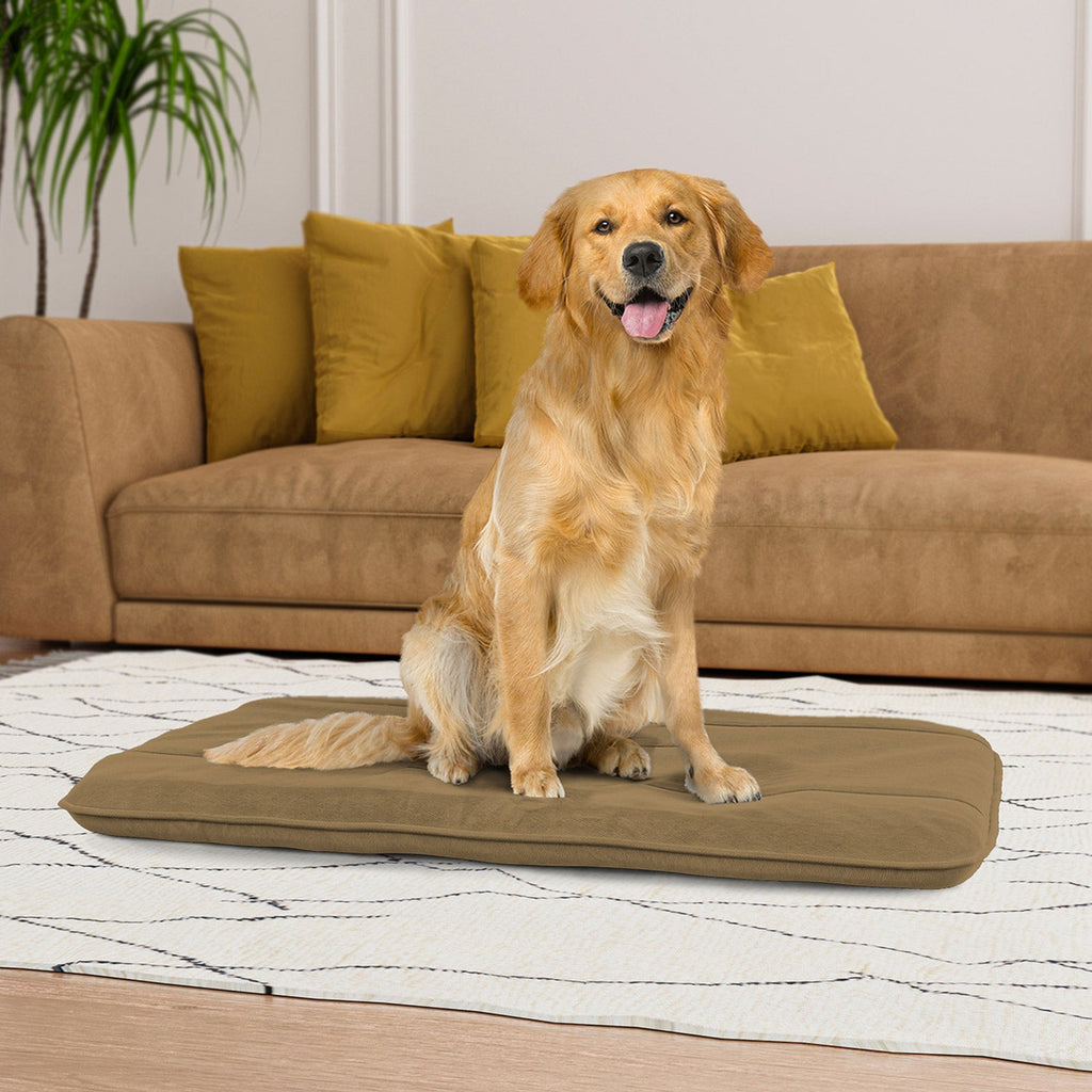 Maxi coussin rembourré et matelassé pour chiens et chats en microfibre noisette