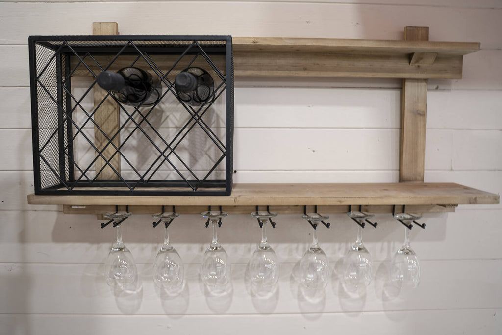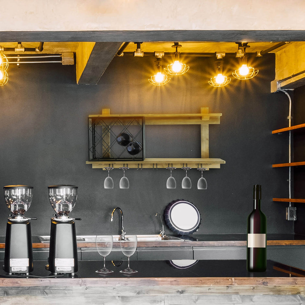 Étagère avec porte-gobelet et porte-bouteille 99x22x49 cm Uri en bois