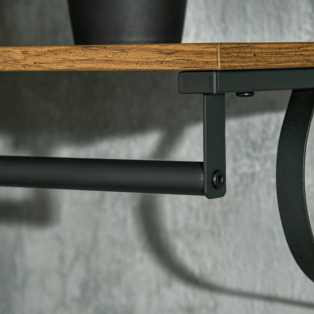 Étagère murale 66x30x27 cm avec 7 crochets et tige en acier et aggloméré marron