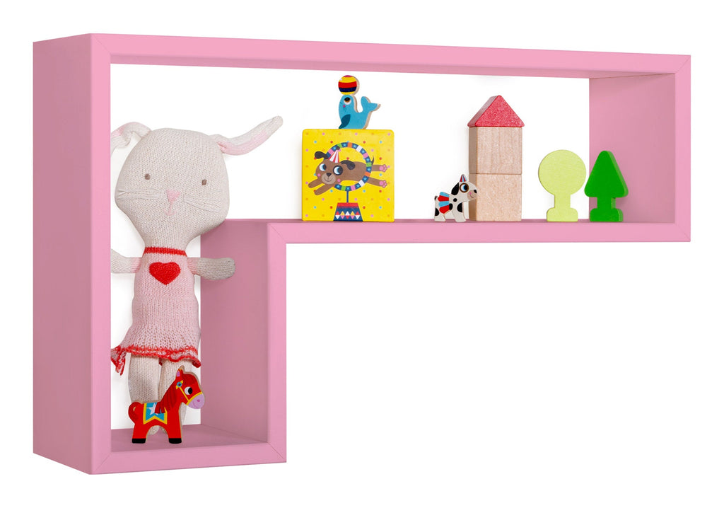Mensola da Parete a Forma di L 61x37x15,5 cm in Fibra di Legno Lettera Rosa Blush