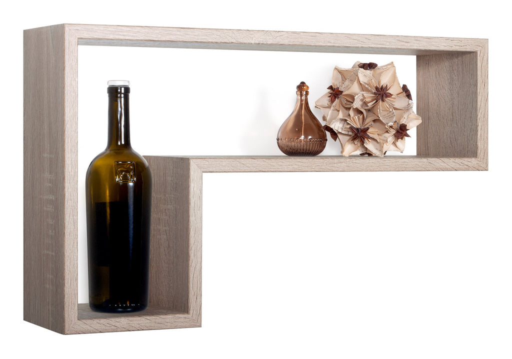 Etagère murale en forme de L 61x37x15,5 cm en panneaux de fibres de bois lettre chêne Sagerau