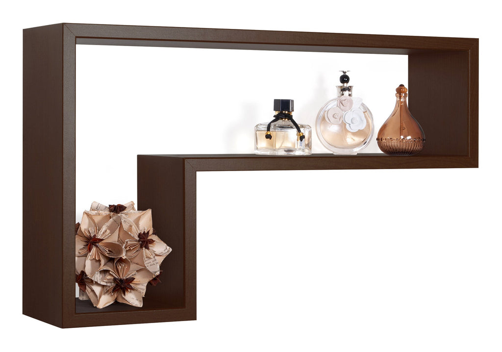 Mensola da Parete a Forma di L 61x37x15,5 cm in Fibra di Legno Lettera Wengè