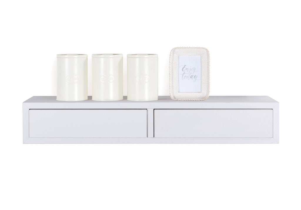 Mensola da Parete con 2 Cassetti 88,2x13,4x23,7 cm in Fibra di Legno Domino Maxi Bianco