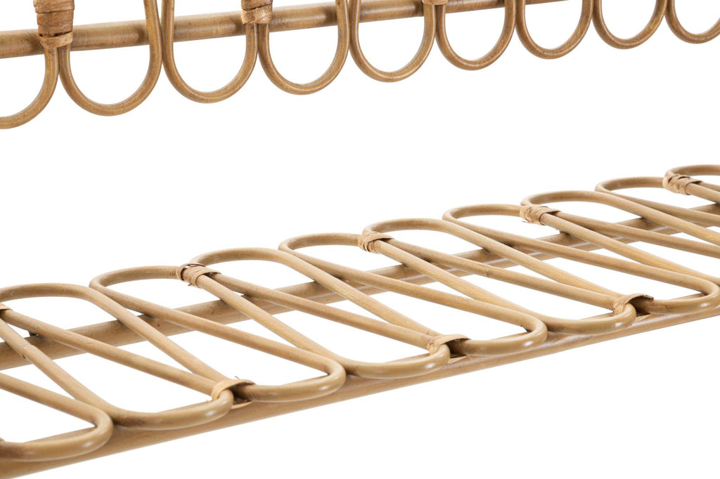 La mensola da parete in metallo con finiture in rattan è caratterizzata da un sorprendente design semplice ed avvolgente. La combinazione di materiali offre un contrasto elegante tra l'aspetto robusto del metallo e la delicatezza del rattan intrecciato. Questo elemento decorativo è in grado di aggiungere un tocco di stile e calore ad ogni ambiente, mentre la sua semplicità lo rende adattabile a diverse tipologie di arredamento. La mensola è un'ottima soluzione per esporre oggetti decorativi o per sfruttare lo spazio in modo funzionale e sofisticato.