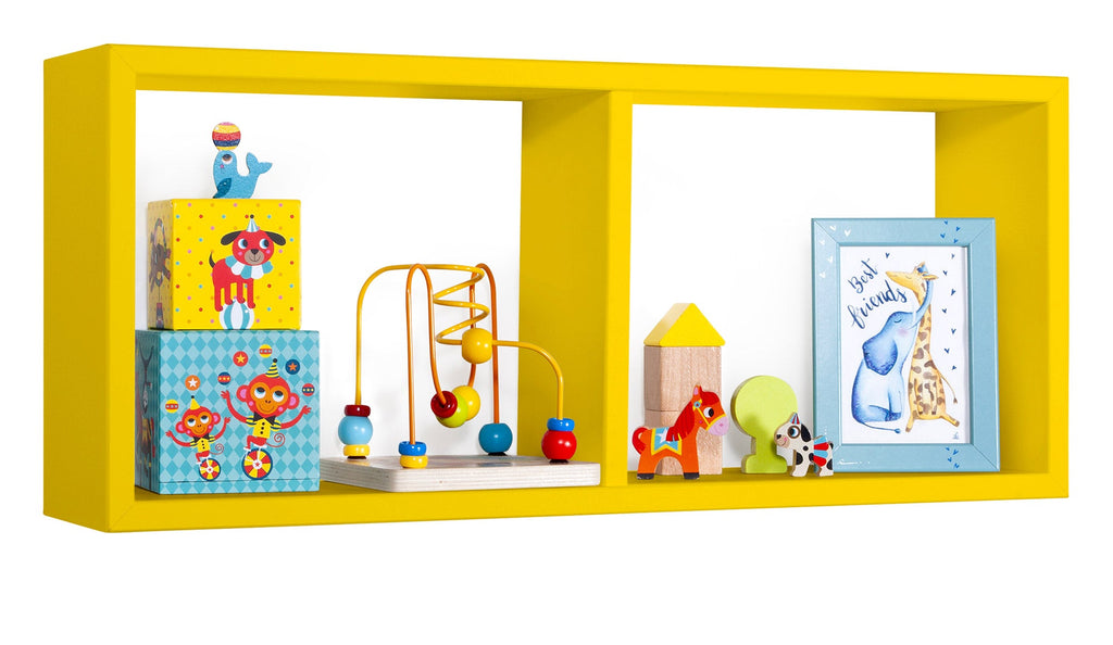 Etagère rectangulaire 2 compartiments muraux 70x30x15,5 cm en fibre de bois Morgana jaune canari
