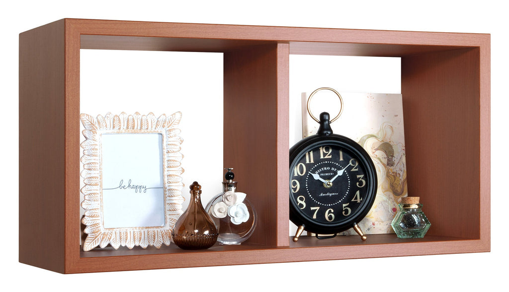 Etagère rectangulaire 2 compartiments muraux 70x30x23,7 cm en fibre de bois de cerisier Morgana Maxi