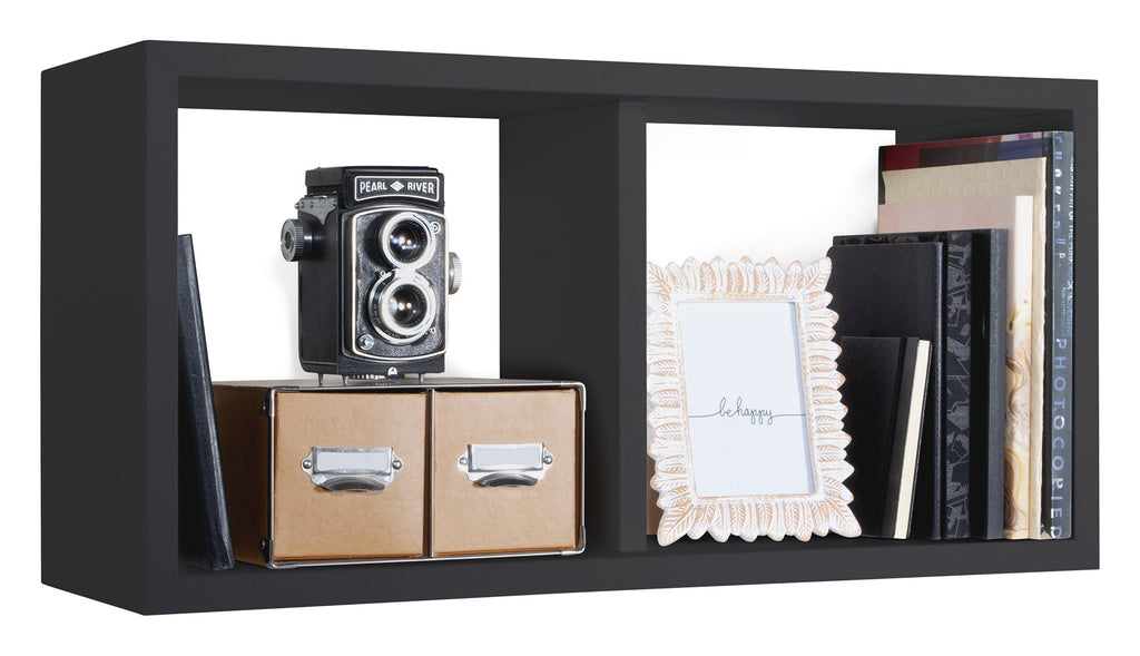 Etagère rectangulaire 2 compartiments muraux 70x30x23,7 cm en bois fibre Morgana Maxi Noir