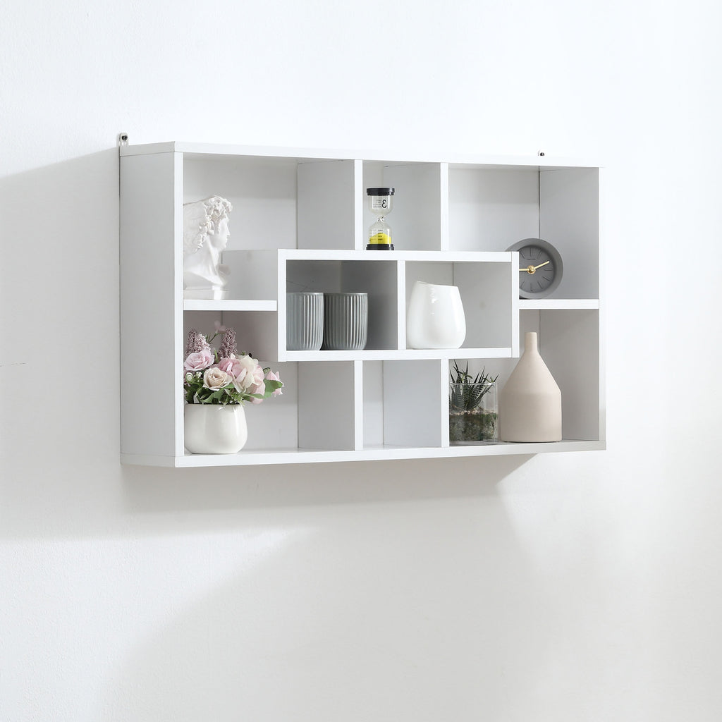 Collectionnez et exposez vos objets avec cette bibliothèque murale à 8 espaces.