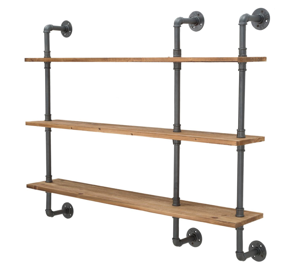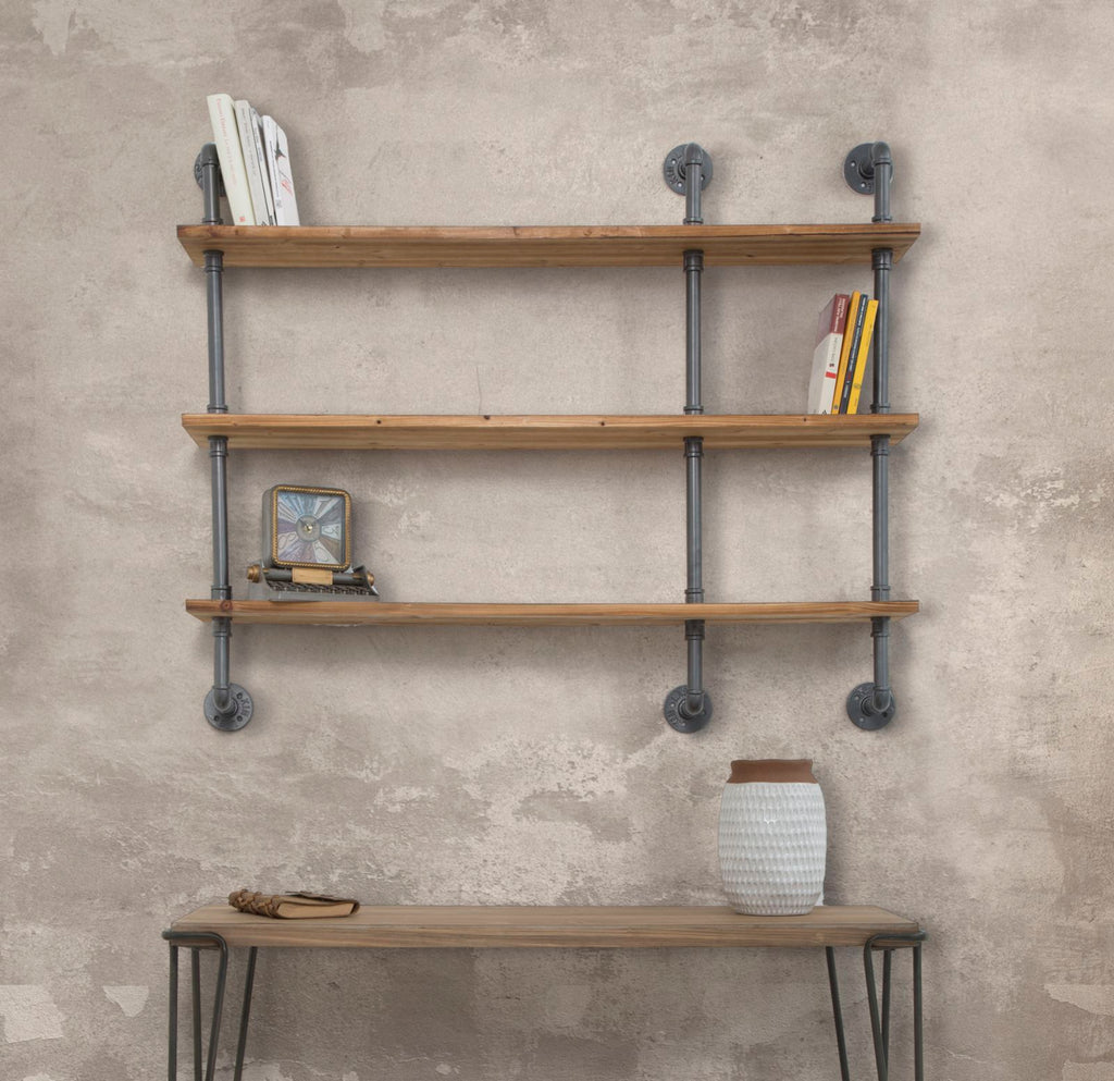 Manhattan Etagères Murales 120x22,5x100 cm Bois de Sapin et Fer Gris et Marron