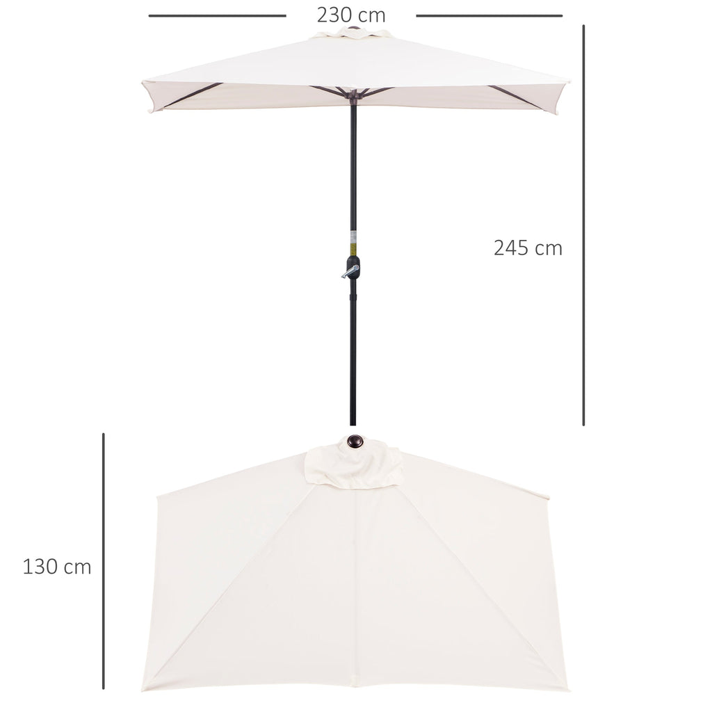 Mezzo Ombrellone da Giardino Mezzaluna 230 x130x245 cm con Apertura a Manovella Crema