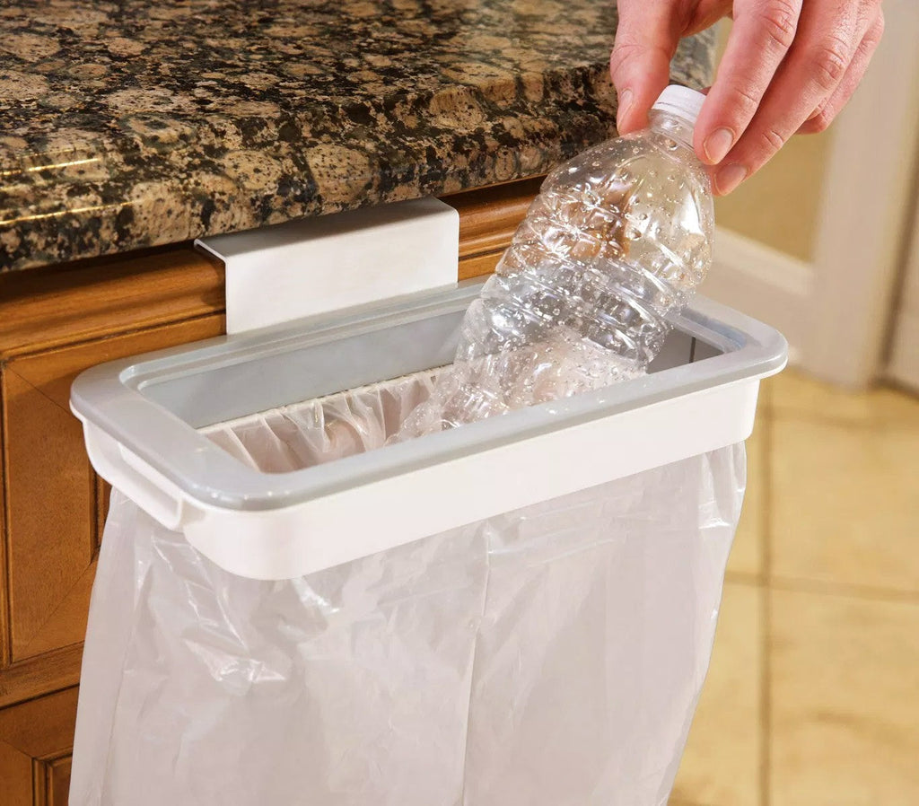 Poubelle polyvalente, idéale pour la cuisine, la salle de bain et le bureau. Fabriqué en plastique dur durable et solide. Grâce à sa conception, la poubelle peut être positionnée et accrochée dans tout type d'armoire avec porte. Il peut contenir tout type de sac courant utilisé pour les courses et peut supporter un poids maximum d'environ 5 kg.