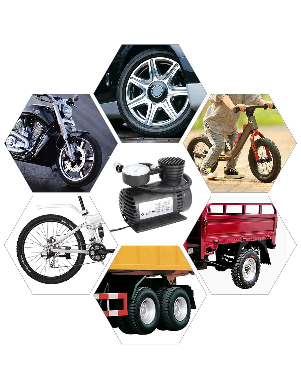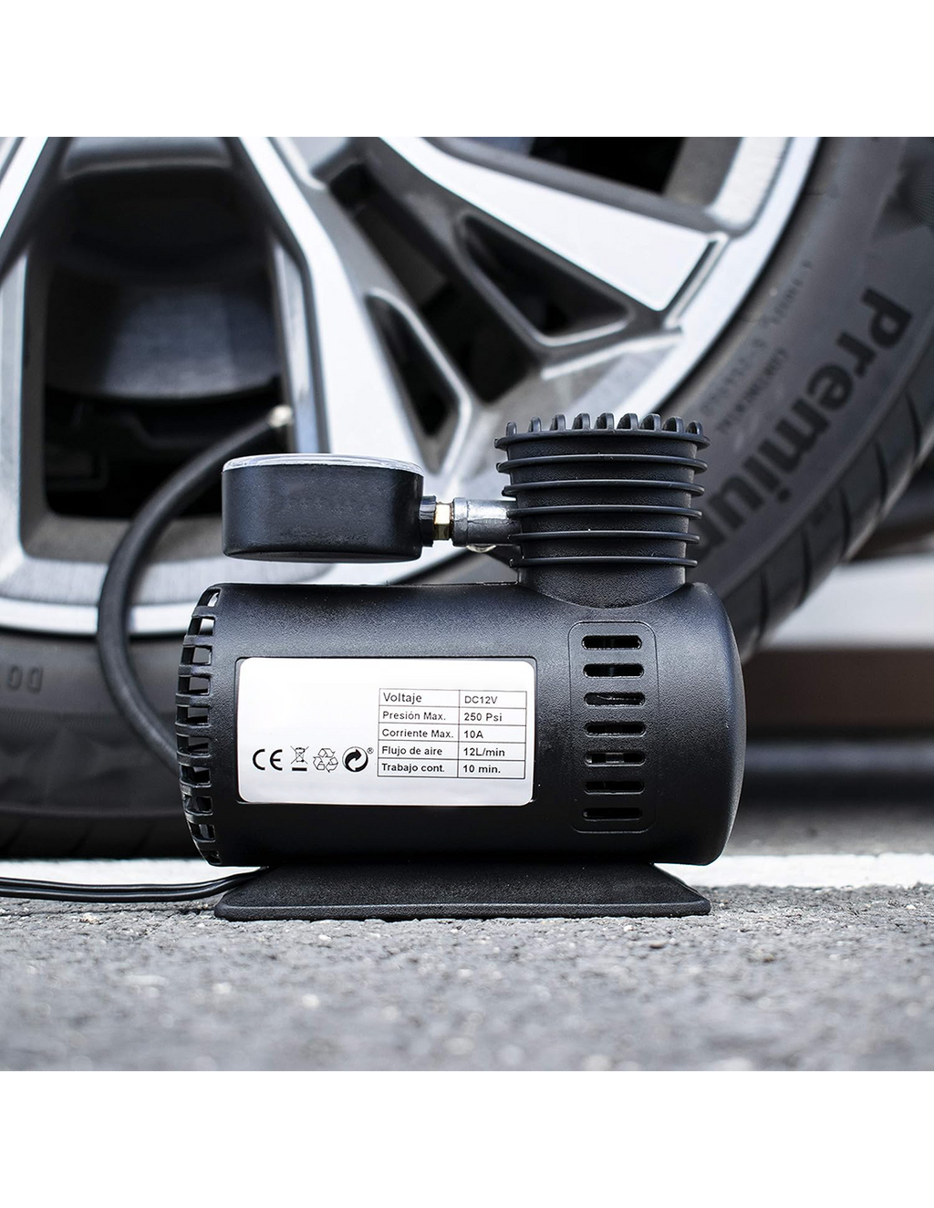 Produit très utile qui est indispensable dans la voiture pour tout désagrément avec les pneus de notre voiture. Ce compresseur portable vous permet de gonfler un petit pneu de voiture en moins de 2 minutes avec uniquement l'alimentation de la prise allume-cigare 12 volts de la voiture. Avec le manomètre intégré vous aurez la possibilité de vérifier la pression et éventuellement de les gonfler pour atteindre la pression optimale ou de mesurer uniquement la pression sans l'alimenter électriquement. Avec la mise à disposition de 3 types d'aiguilles/buses, il est également possible de gonfler d'autres objets tels que des ballons de jeu, des matelas, des dériveurs, des piscines gonflables, des roues de moto et/ou de vélo. Également utile dans les camping-cars et/ou les bateaux pour les jeux d'eau.