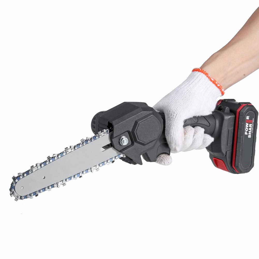 Progettata con un paraspruzzi per la piastra guida, la motosega elettrica è sicura e impedisce agli schizzi di trucioli di legno durante l'uso. Con manico ergonomico antiscivolo e design di controllo dell'interruttore di sicurezza, è comodo da tenere in una mano per eseguire il taglio del legno e facile da controllare. Poiché la motosega elettrica è progettata con motore in rame ad alta potenza, fornisce un'elevata efficienza di lavoro e un funzionamento facile. La motosega a batteria ricaricabile è dotata di 2 batterie e caricabatterie rapido. E le batterie con protezione da sovraccarico e temperatura offrono una durata della batteria molto più lunga. Quando è completamente carica, la mini motosega a batteria può tagliare i rami continuamente per 40-60 minuti, il tempo di ricarica è di circa 2-3 ore. La mini motosega elettrica è un'ottima alternativa per tutti i tipi di progetti domestici, giardini, cortili o agricoli. È adatto per tagliare legno, tagliare rami, potatura, giardinaggio e molto altro ancora.