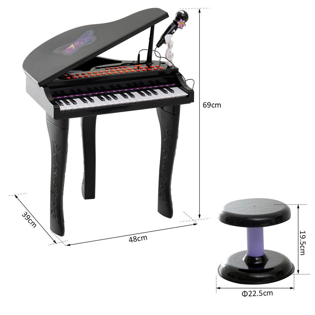 Mini jouet piano pour enfants avec microphone et tabouret noir