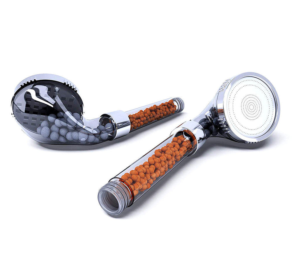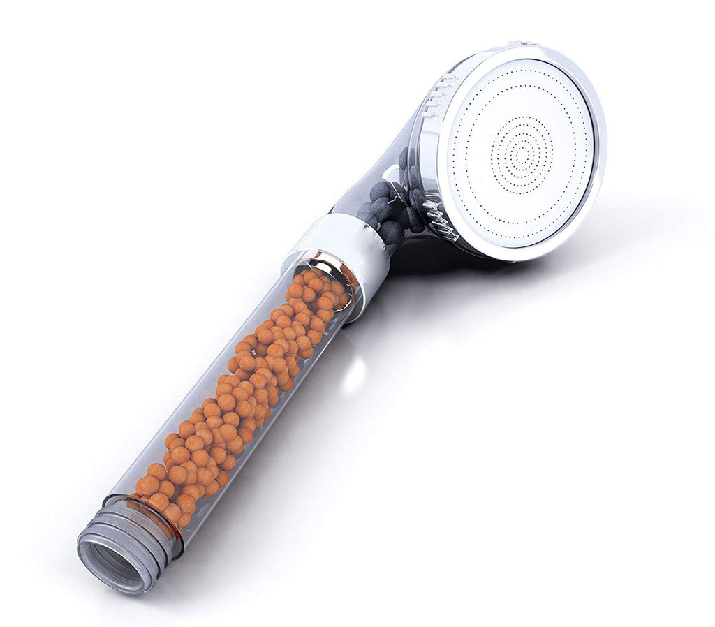 Le pommeau de douche à billes minérales à 2 étages réduit progressivement les impuretés de l'eau qui sont souvent à l'origine de la sécheresse cutanée et des déséquilibres de l'équilibre épidermique.