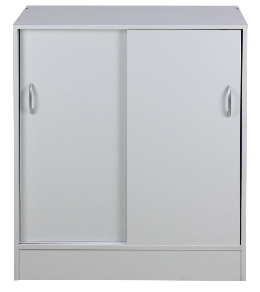 Armoire 2 Portes Coulissantes 3 Etagères 60x30x71 cm en PB et Papier Blanc