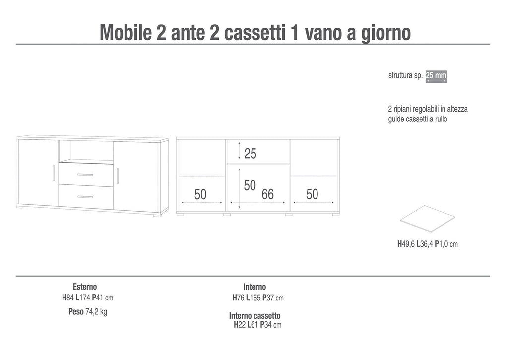 Armoire 2 Portes 2 Tiroirs 174x84x41 cm Oxyde Blanc/Chêne Naturel