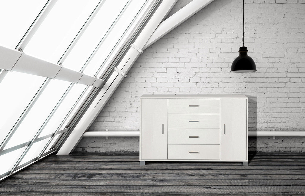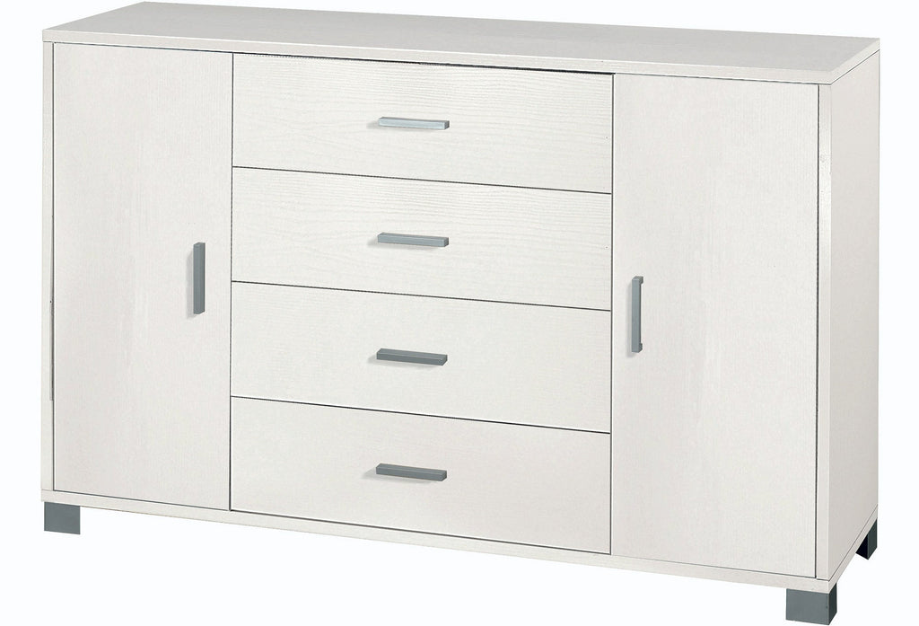 Armoire 2 Portes 4 Tiroirs 136x86x41 cm Blanc Flammé