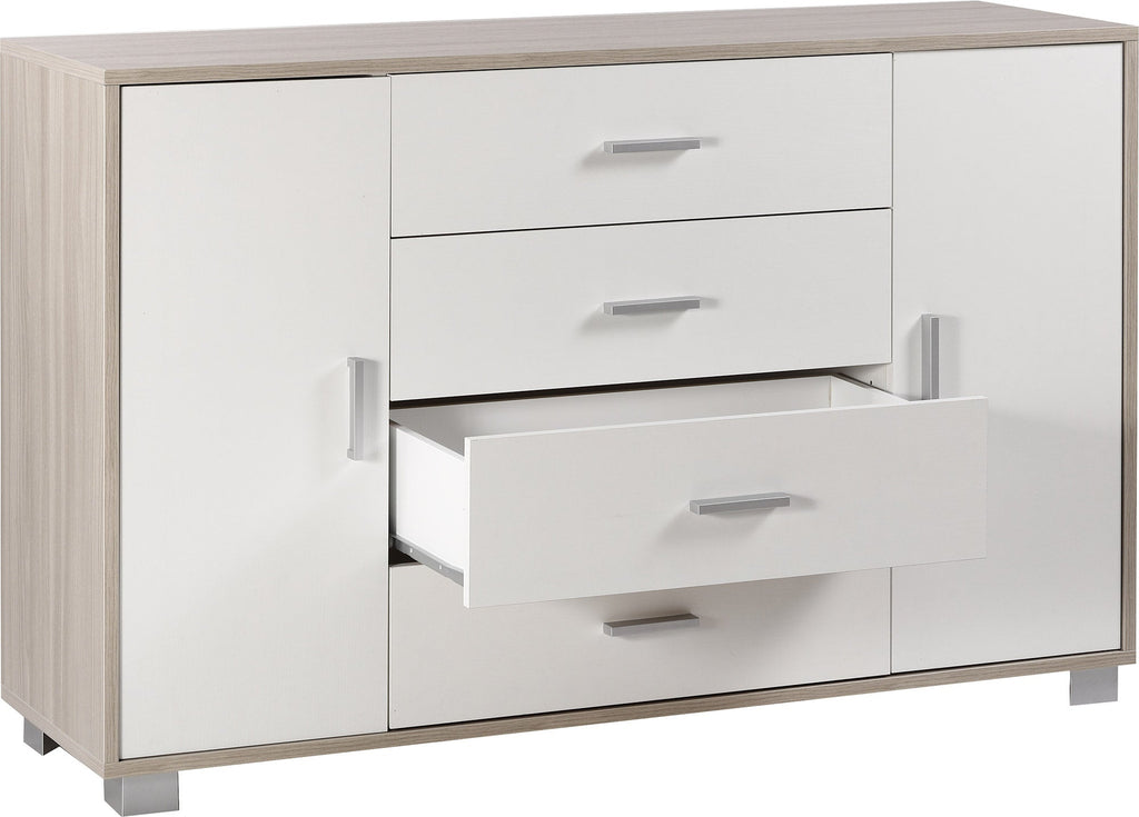 Armoire 2 Portes 4 Tiroirs 136x86x41 cm Orme Clair/Blanc Flammé