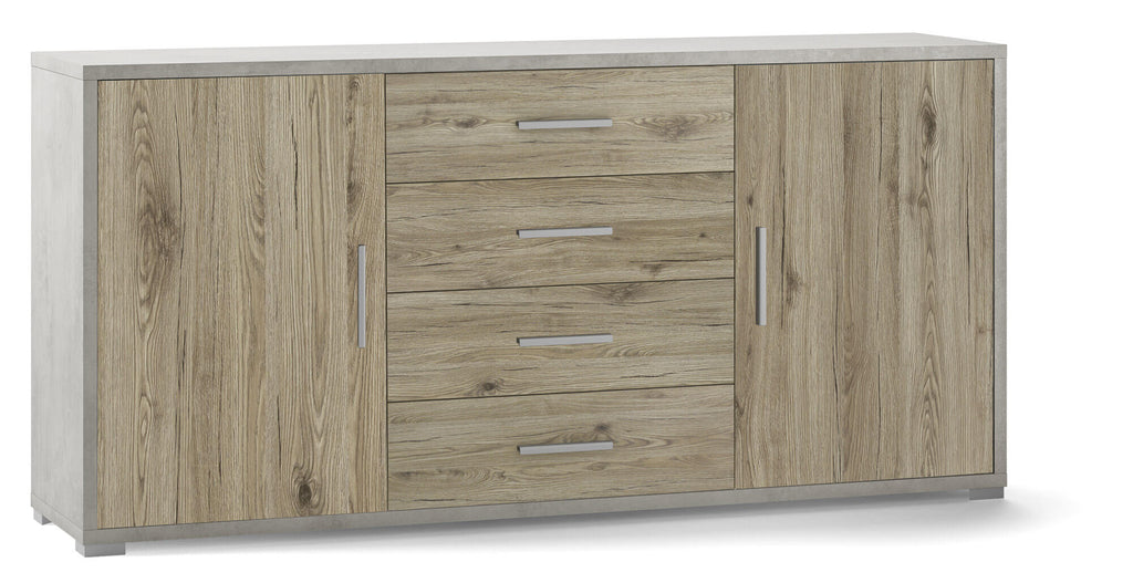 Armoire 2 Portes 4 Tiroirs 174x84x41 cm Ciment/Chêne Naturel