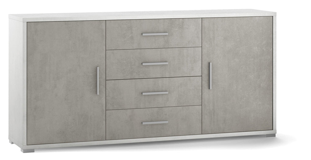 Armoire 2 Portes 4 Tiroirs 174x84x41 cm Oxyde Blanc/Ciment