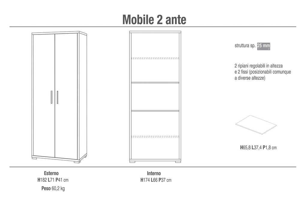 - A l'intérieur : 2 étagères réglables et 2 fixes