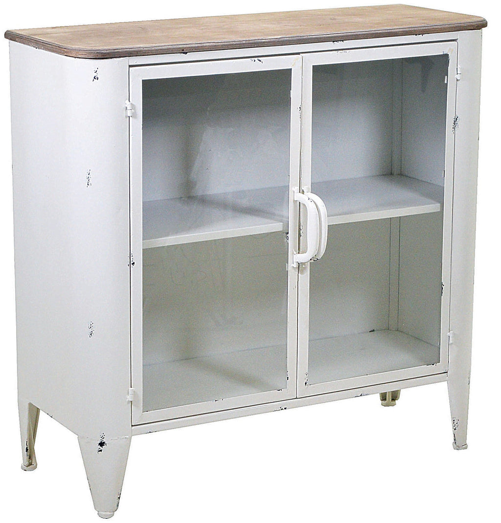 Armoire 2 Portes Métal Dessus en Bois Adami Blanc Edimbourg