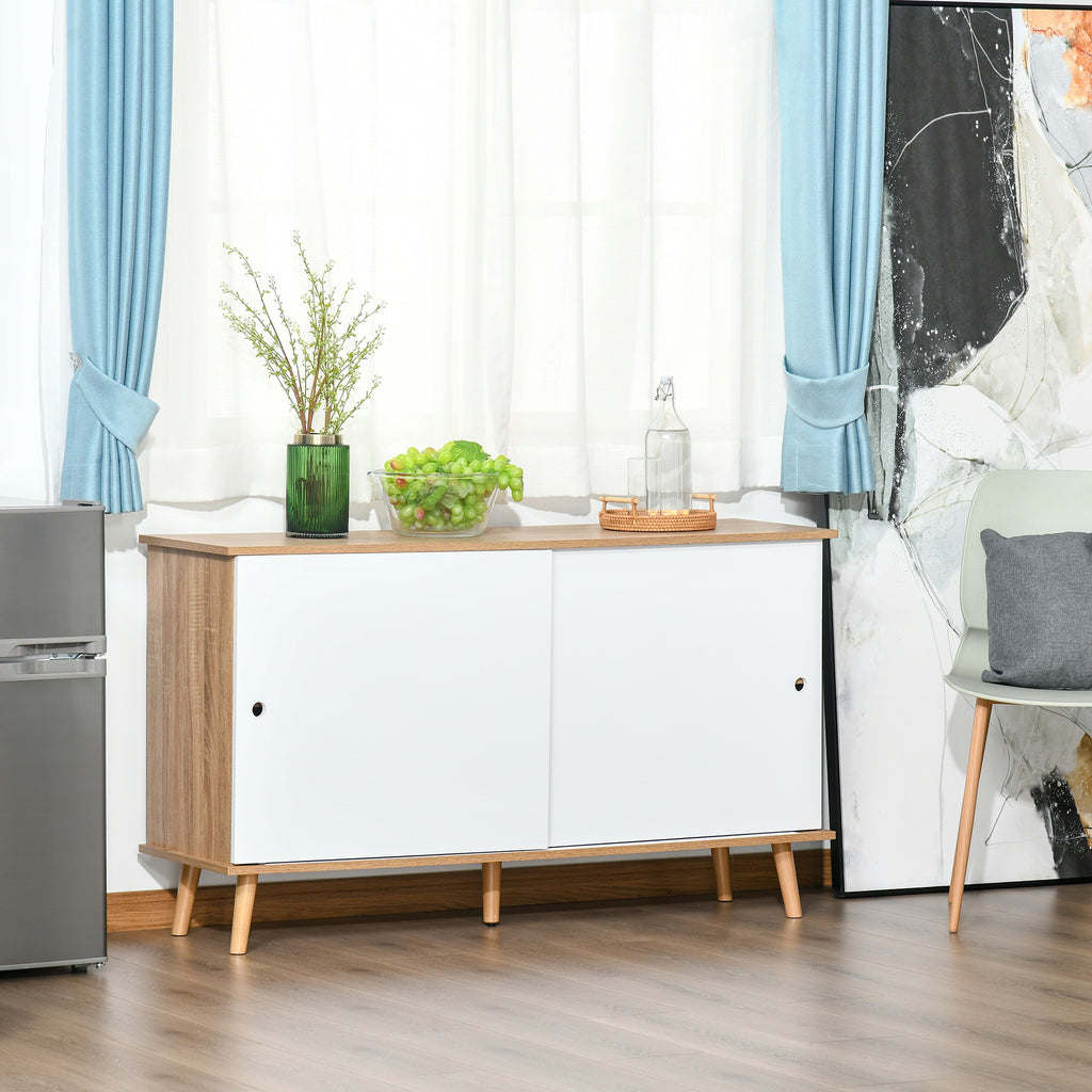 Armoire à 2 Portes Coulissantes 130x40x74,5 cm en Chêne et Bois Blanc