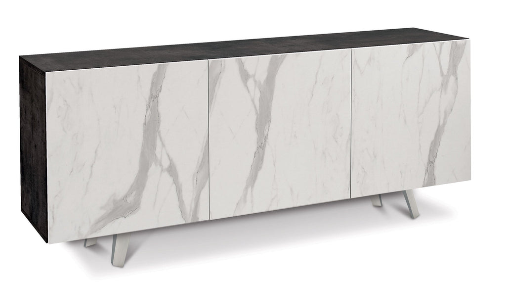 Armoire 3 Portes 174x70x41 cm Oxyde Noir/Marbre Calacatta