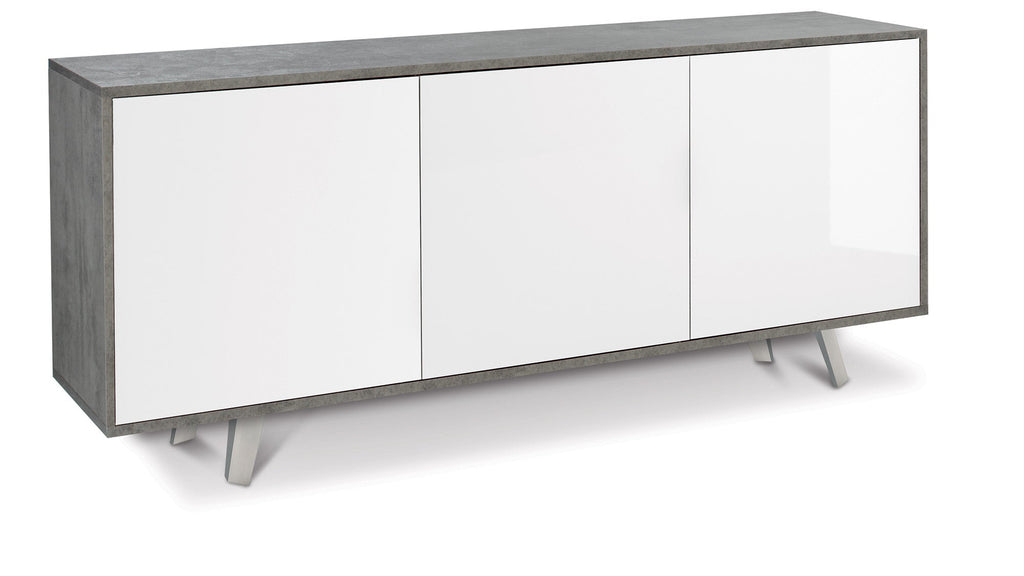 Armoire 3 Portes 177x74x41 cm Ciment/Blanc Brillant