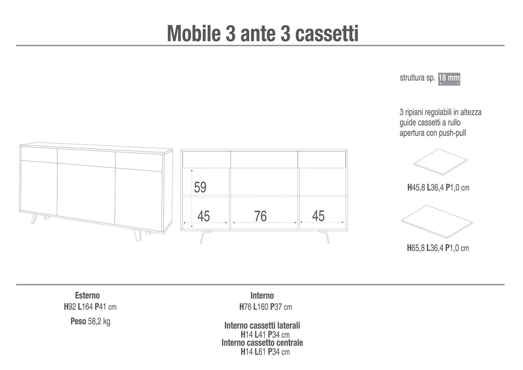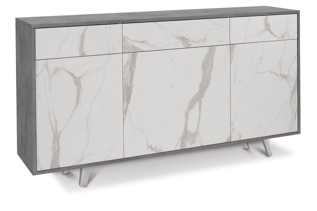 Armoire 3 Portes 3 Tiroirs 164x92x41 cm Ciment/Marbre Calacatta