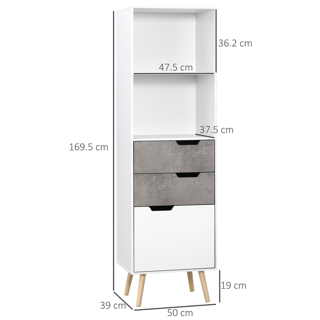Armoire 3 Tiroirs et 2 Étagères 50x39x169,5 cm en Aggloméré Blanc Gris et Bois de Pin