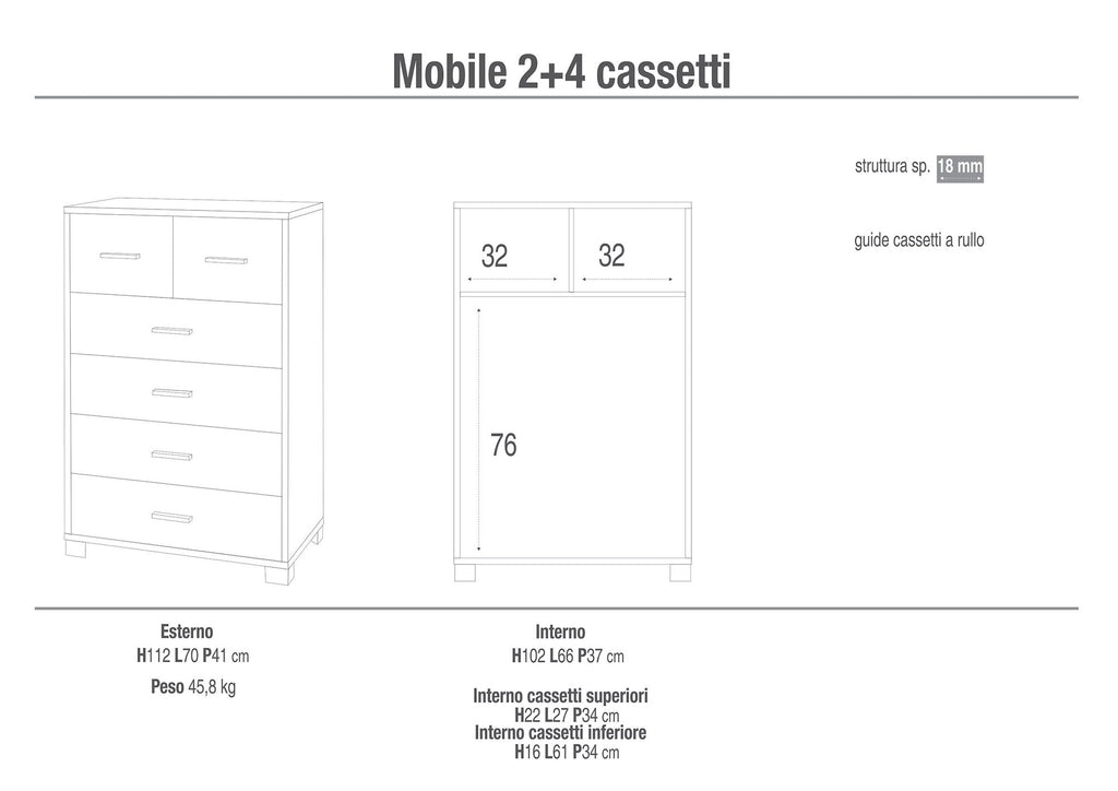 Armoire 4+2 Tiroirs 70x112x41 cm Orme Clair/Blanc Flammé