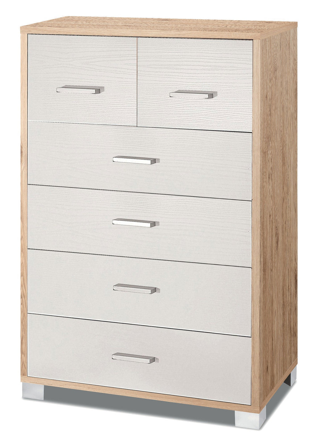 Armoire 4+2 Tiroirs 70x112x41 cm Chêne Naturel/Blanc Flammé