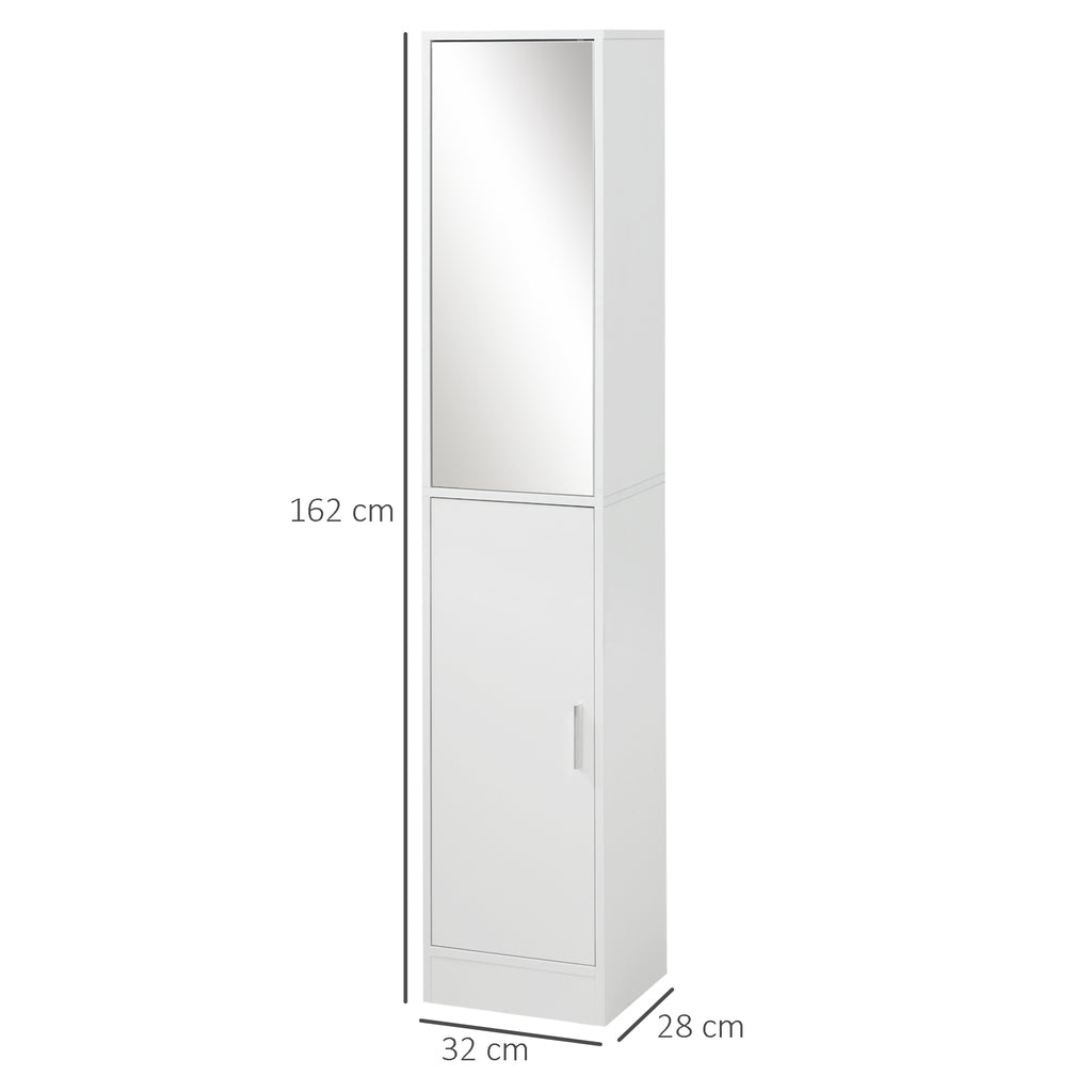 Mobile a Colonna Bagno 32x28x162 cm con Anta Superiore a Specchio Rivestimento in Melamina Bianco