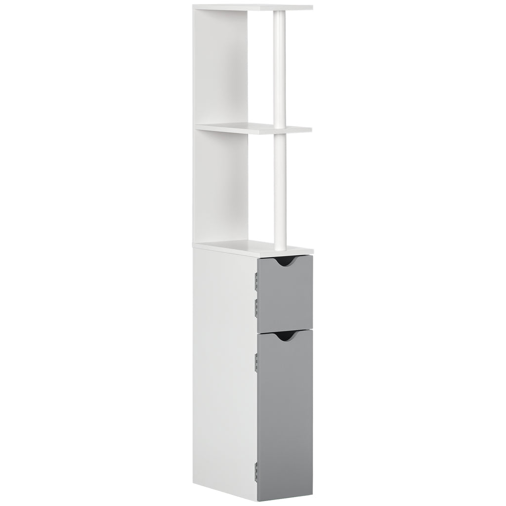 Mobile a Colonna da Bagno 15,2x29,8x118 cm in Legno Bianco e Grigio